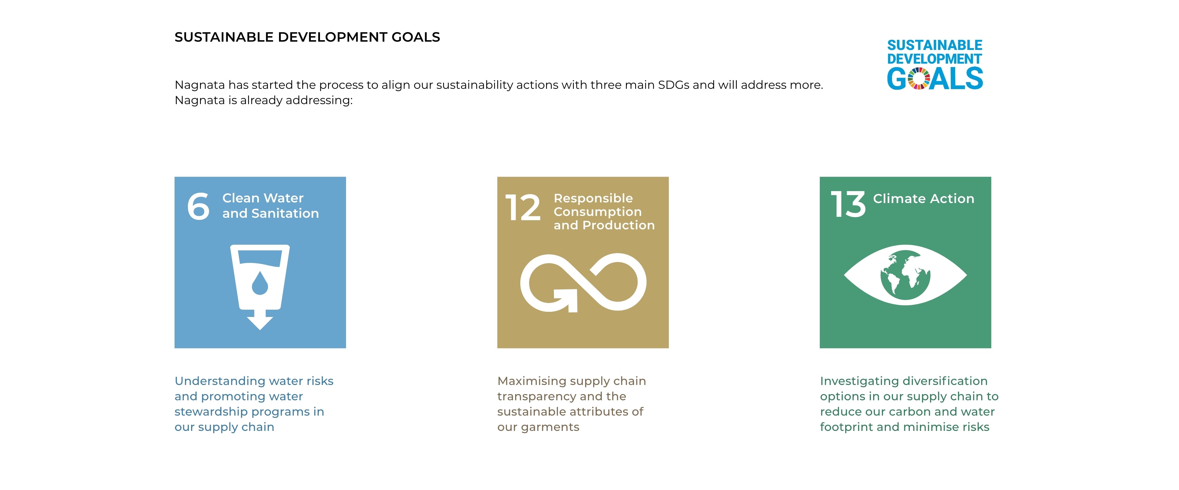 Nagnata has begun to align our sustainability actions with three main SDG’s outlined by the United Nations. At stage 1 we are currently addressing: