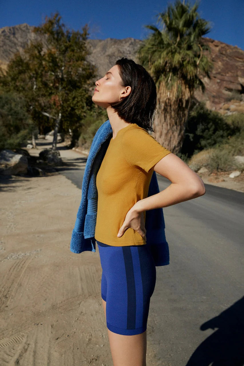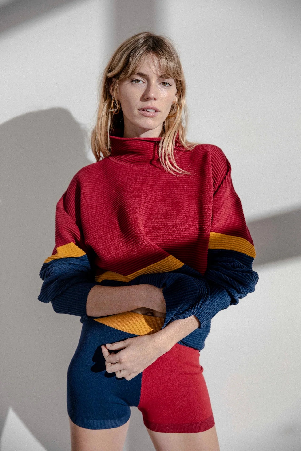 Designed to wear studio to street with a nod to 90’s style, the vibrant colour blocked collection celebrates the movement of life.